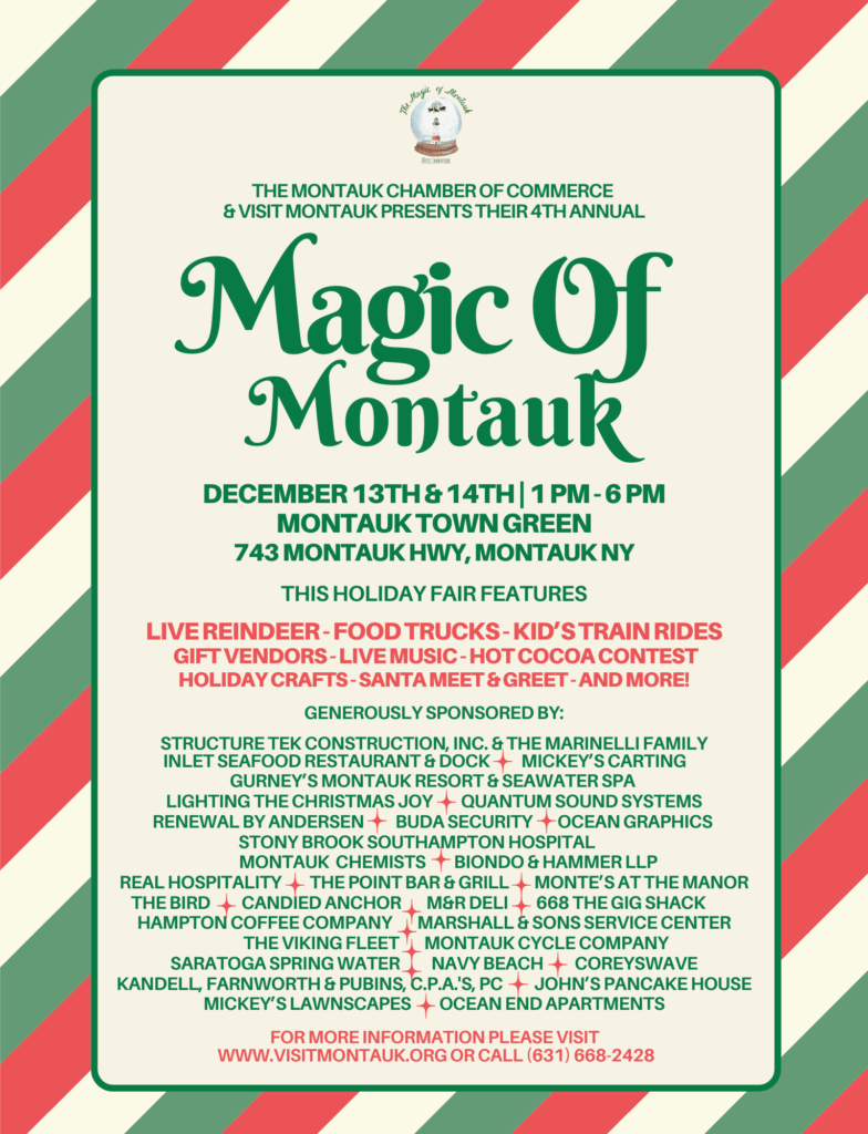 The Montauk Chamber of Commerce operates Visit Montauk on social media. Be sure to follow us on Instagram, Facebook, and TikTok: @visitmontauk! Don’t forget to share your Montauk memories using #VisitMontauk for a chance to be featured on our social media pages!